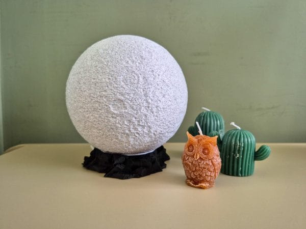 Breng de magie van de maan in huis met deze sfeervolle 3D-geprinte lamp, gebaseerd op realistische NASA-data. Met zijn gedetailleerde oppervlak en warme LED-verlichting is dit dé eyecatcher voor nachtkastje, bureau of woonkamer.